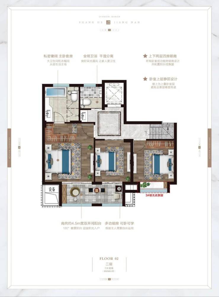 相比市面常见的90㎡小三房,这样的尺度更舒适,主卧套房设计,预留了衣帽间和独立卫浴,兼具功能性与舒适度.